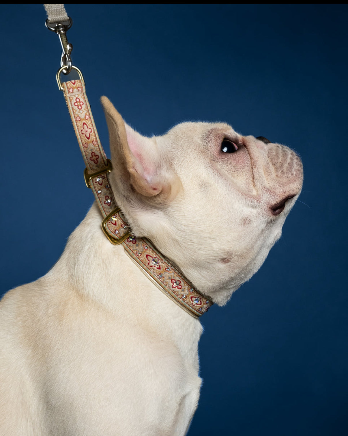 Luxe Collars are our most popular style of collars, with intricate designs complete with Swarovski crystals, metallic braids, or uniquely sewn flourishes and patterns. They're not printed fabrics, but thoughtfully designed pieces for your dog to make a statement!