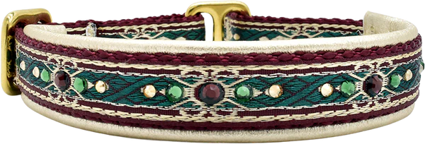 An intricate jacquard ribbon on heavy duty nylon webbing, backed with garment grade leather. All of our Luxe European Crystal collars are guaranteed against crystal loss. See FAQ for more information. Spot clean as necessary and apply leather conditioner.
